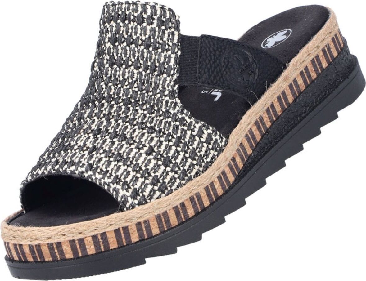 Rieker Keilpantolette Sommerschuh, Strandschuh, Urlaubschuh, Plateau, mit Stretcheinsatz (schwarz)