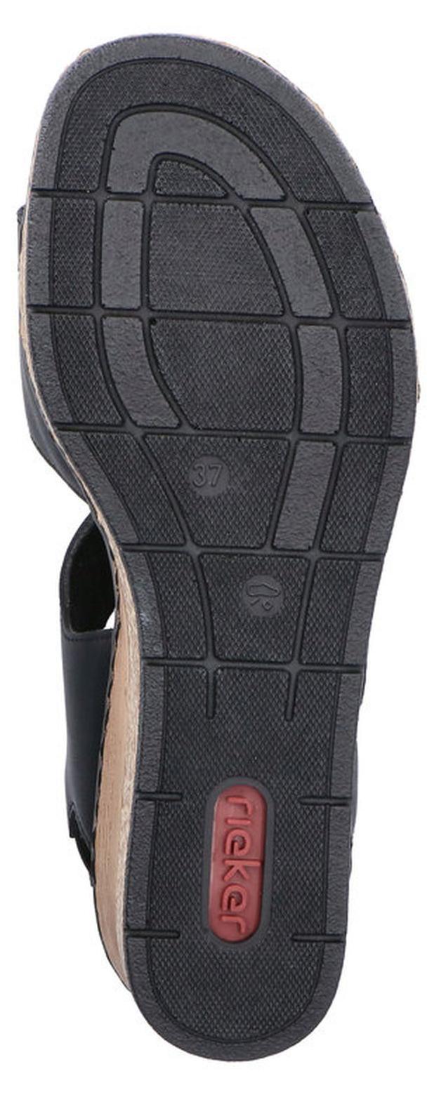 Dank der leicht profilierten Sohle aus Synthetik sorgen die Keilsandaletten für mehr Rutschfestigkeit auf nassem und glattem Untergrund. So bist du im Sommer gut unterwegs — mit diesen Frauen-Keilsandaletten von Rieker.