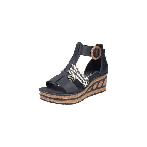 Rieker Keilsandalette Sommerschuh, Plateausandalette, Sandale mit modischem 6 cm Keilabsatz (schwarz)