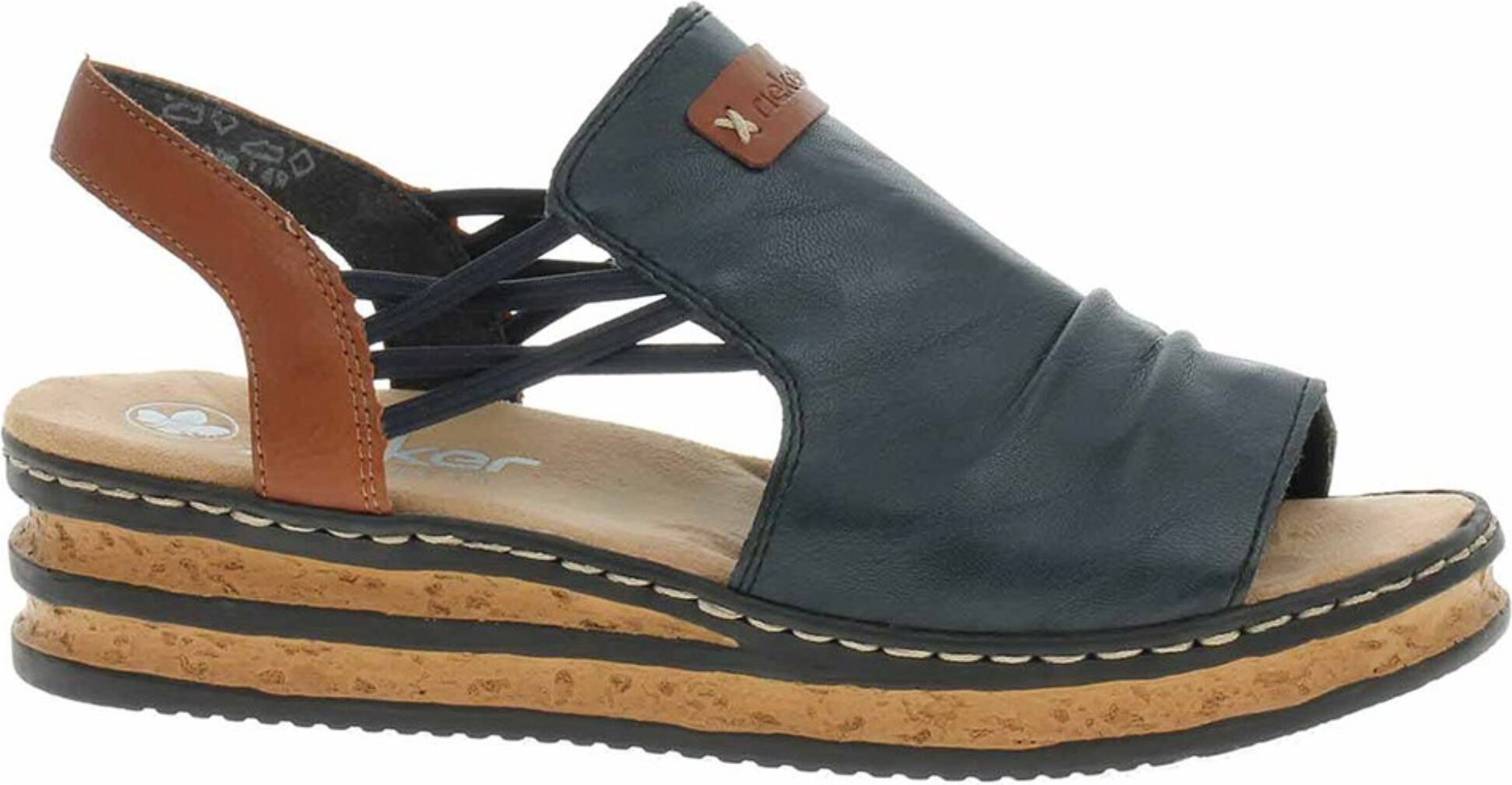 Rieker Keilsandalette, Sommerschuh, Sandale, Keilabsatz, mit Stretchbänder (blau)