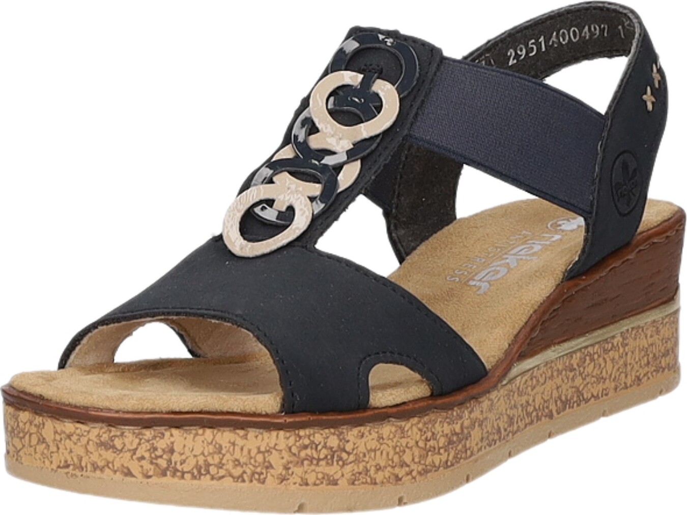 Rieker Keilsandalette Sommerschuh, Sandale, Plateausandale mit Gummizug für guten Sitz (blau)