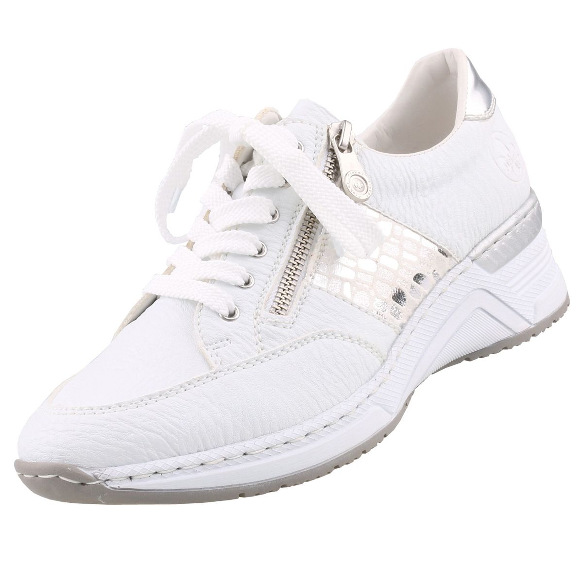 Rieker Keilsneaker, Schnürschuh, Halbschuh, Sneaker mit loser Einlage, schmale Form (silber/weiß)