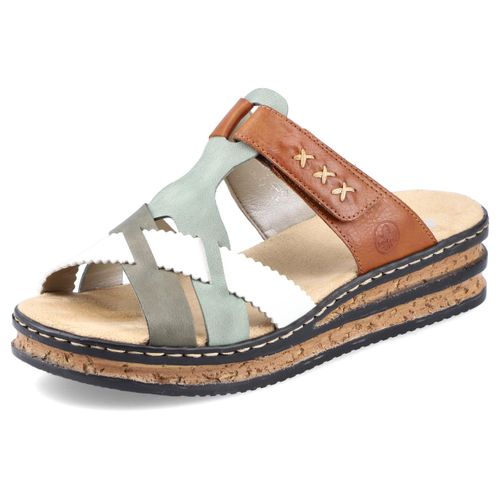 Rieker Pantolette, Keilabsatz, Sommerschuh, Schlappen mit praktischem Klettriemchen (bunt)