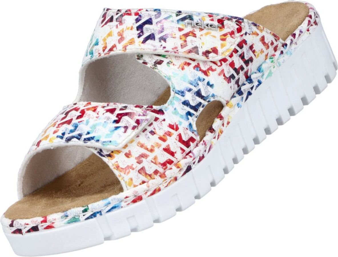 Rieker Pantolette Sommerschuh, Schlappen, Hausschuh mit modischer Plateausohle (bunt)