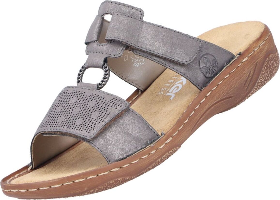 Rieker Pantolette Sommerschuh, Schlappen, Urlaubschuh, Klettschuh mit Perforation (grau)