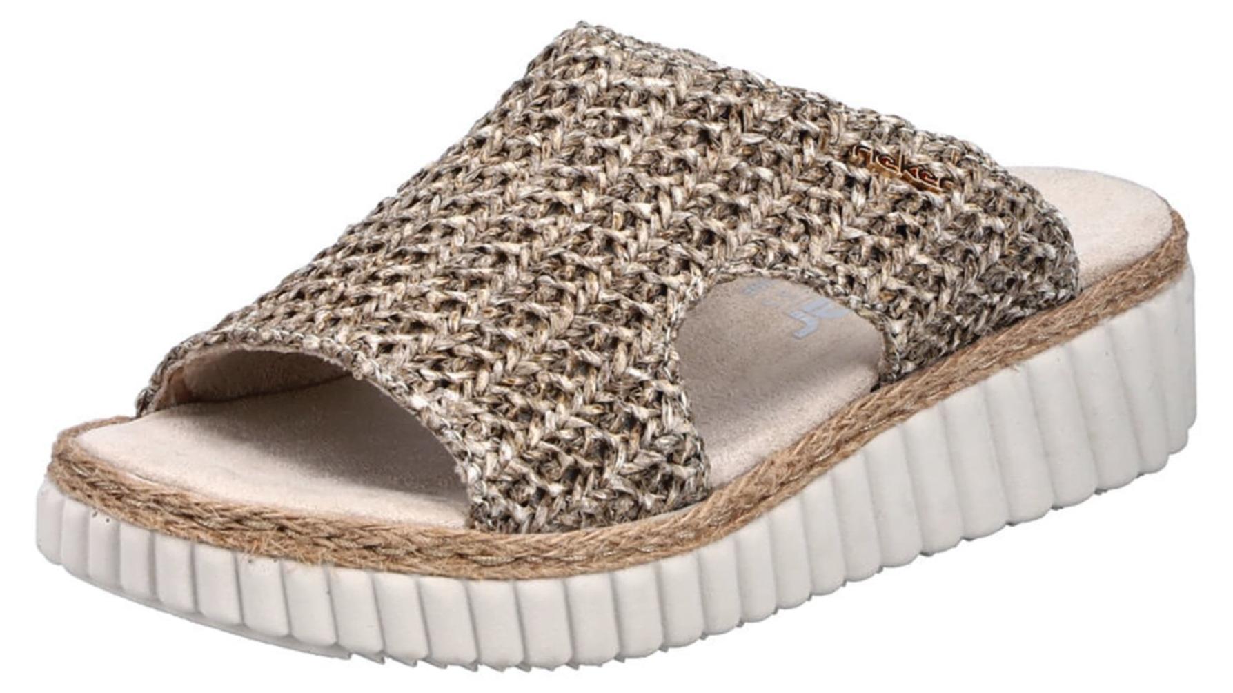 Rieker Pantolette Sommerschuh, Strandschuh, Keilpantolette mit Bastumrahmung (beige)