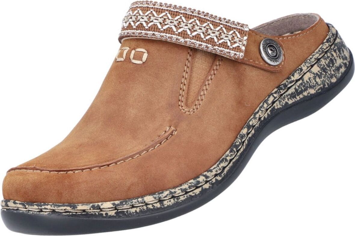 Rieker Pantoletten Pantolette aus strapazierfähigem Synthetik (braun)