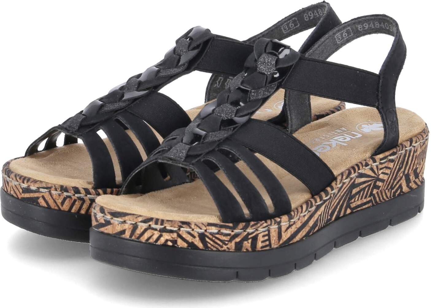 Rieker Plateausandaletten Sommerschuh, Urlaubschuh, Sandalette mit dekorativem Schmuckelement (schwarz)