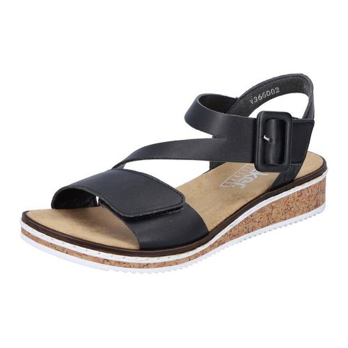 Rieker Riemchensandale Sommerschuh, Sandalette, Keilabsatz, mit asymmetrischem Riemchen (schwarz)