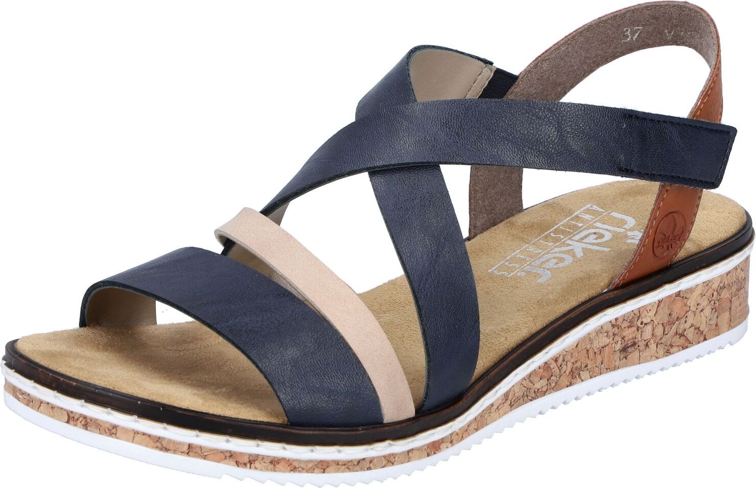 Rieker Riemchensandale, Sommerschuh, Sandalette, Keilabsatz, mit Klettriemchen (blau)