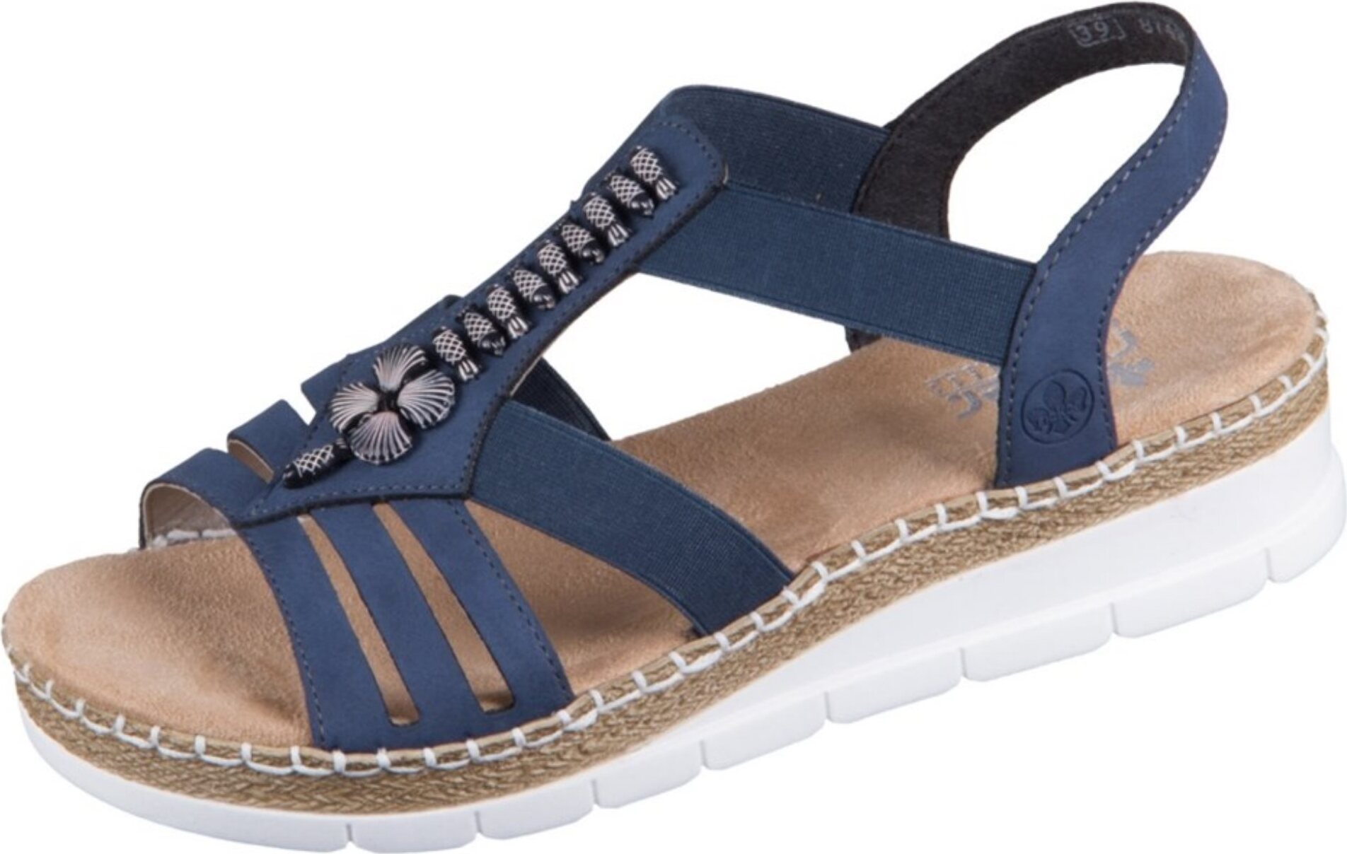 Rieker Riemchensandale, Sommerschuh, Sandalette, Keilabsatz, mit modischen Schmuckelementen (blau)