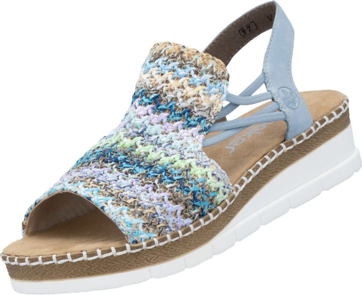 Verleihen Sie Ihrem Outfit einen fröhlichen Akzent mit den einzigartigen Rieker Sandaletten, die sowohl Komfort als auch Stil vereinen. Diese Plateausandale in Größe 38 EU begeistert mit ihrem lebendigen, mehrfarbigen Design und ist der ideale Schuh für warme Tage und entspannte Stunden im Freien. +