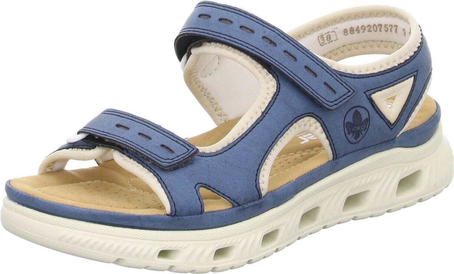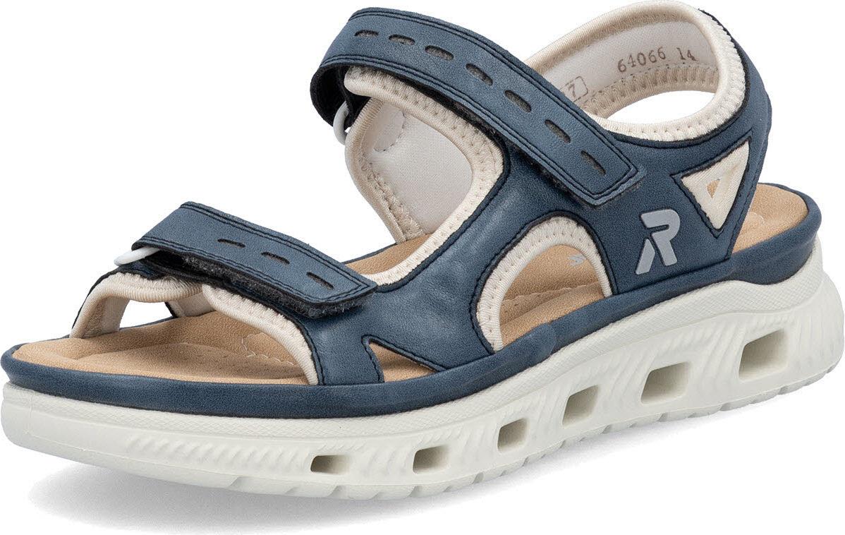Entdecken Sie die perfekte Verbindung von Funktionalität und modischem Design mit der R-Rieker Outdoorsandale in blau-creme. Diese Sommerschuhe sind mehr als nur Sandalen – sie sind Ihre idealen Begleiter für warme Tage und Abenteuer im Freien. +