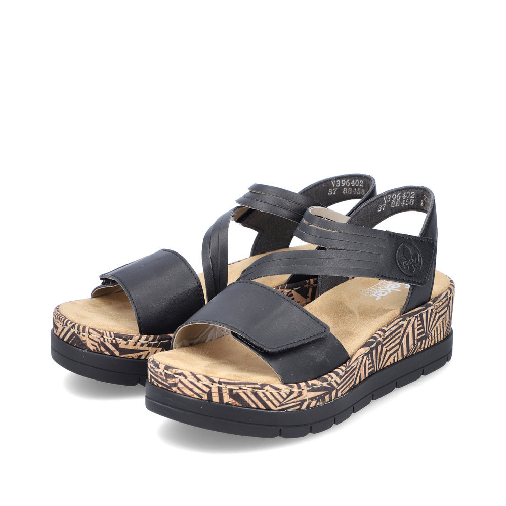 Rieker Keilsandalette, Sommerschuh, Sandale, Keilabsatz, mit gemusterter Plateausohle (schwarz)
