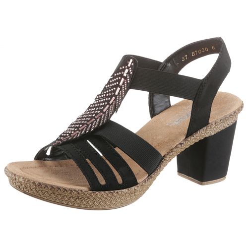 Rieker Sandalette, Sommerschuh, Sandale, Plateauabsatz, mit Strass-Steinchen verziert (schwarz)