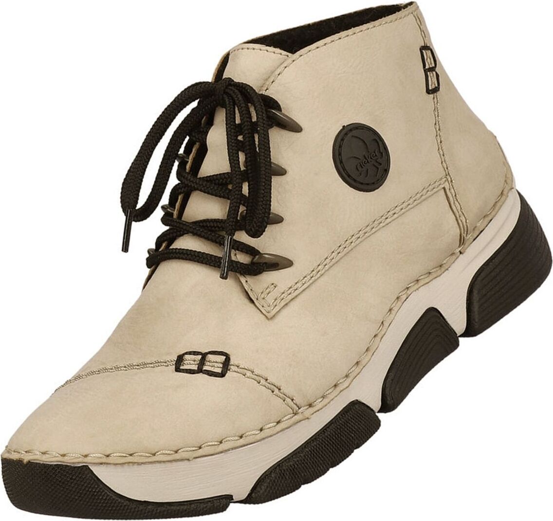 Mit den Rieker Schnürboots mit Ziersteppung in der Farbe Beige bist du für jeden sportlichen Anlass bestens gerüstet. Das Obermaterial besteht aus hochwertigem Lederimitat, das nicht nur besonders strapazierfähig ist, sondern auch optisch absolut überzeugt. Das Innenmaterial aus Textil sorgt für angenehmen Tragekomfort, während die Ziersteppungen dem Schuh das gewisse Etwas verleihen. +