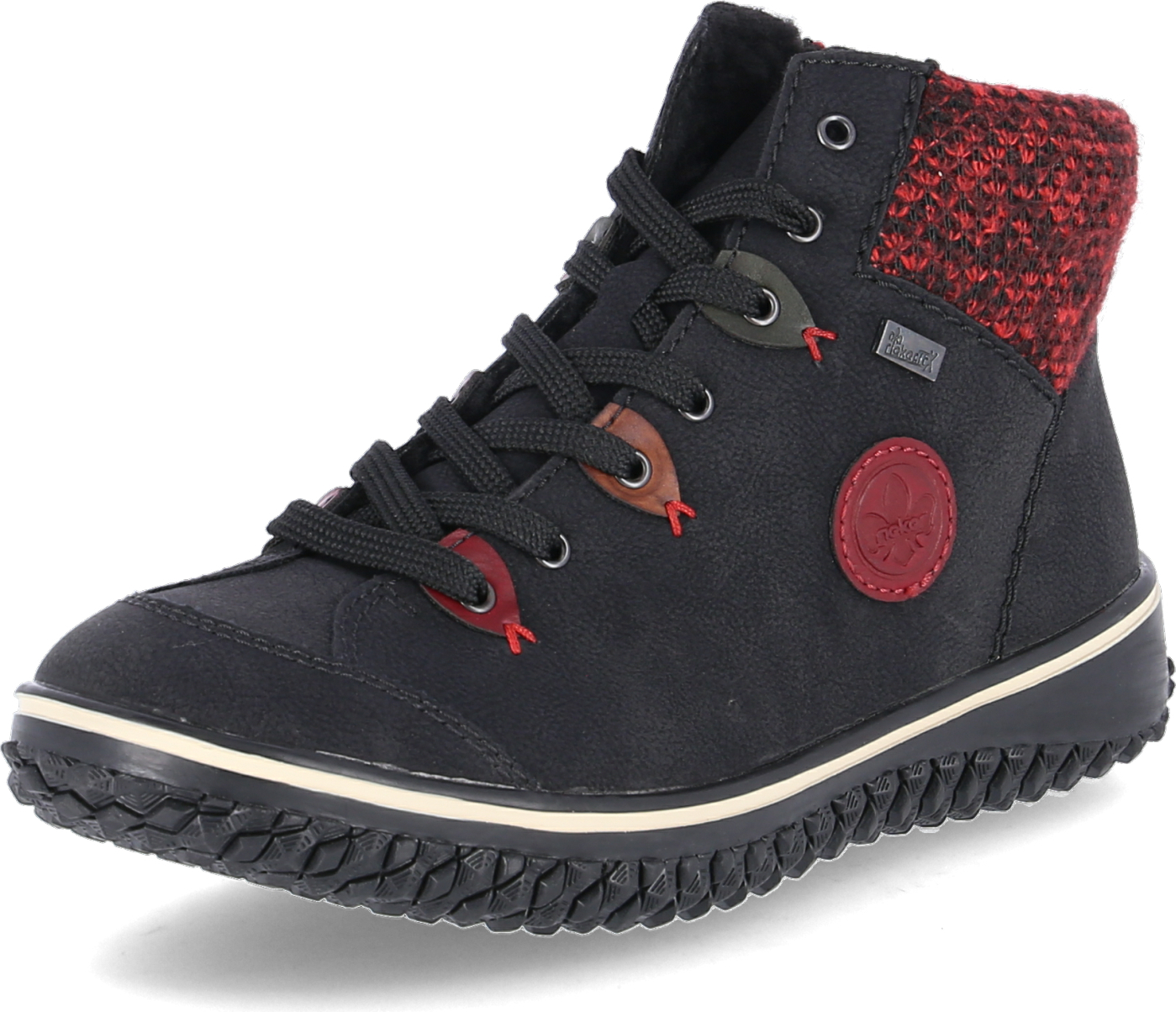 Für Frauen die das Besondere suchen, ist diese Damen Stiefelette von Rieker genau das Richtige.Sie wurde aus Kunstleder in Schwarz gefertigt. +