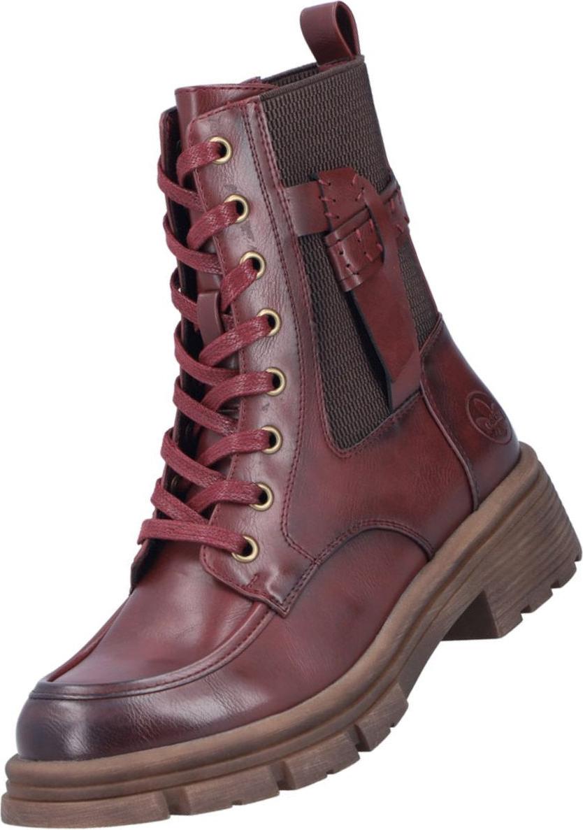 Rieker Schnürboots Schnürstiefelette, Herbstboots, Profilsohle, Blockabsatz, mit Stretch (rot)