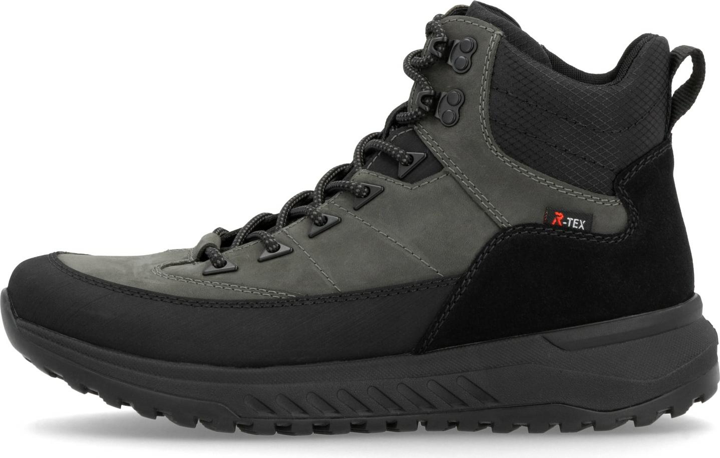 Winterboots RIEKER SPORT, Herren, Gr. 47, grau (grau, schwarz), Leder, Textil, Schuhe Winterboots, Schneeboots, Outdoorstiefelette mit Fiber Grip-Laufsohle