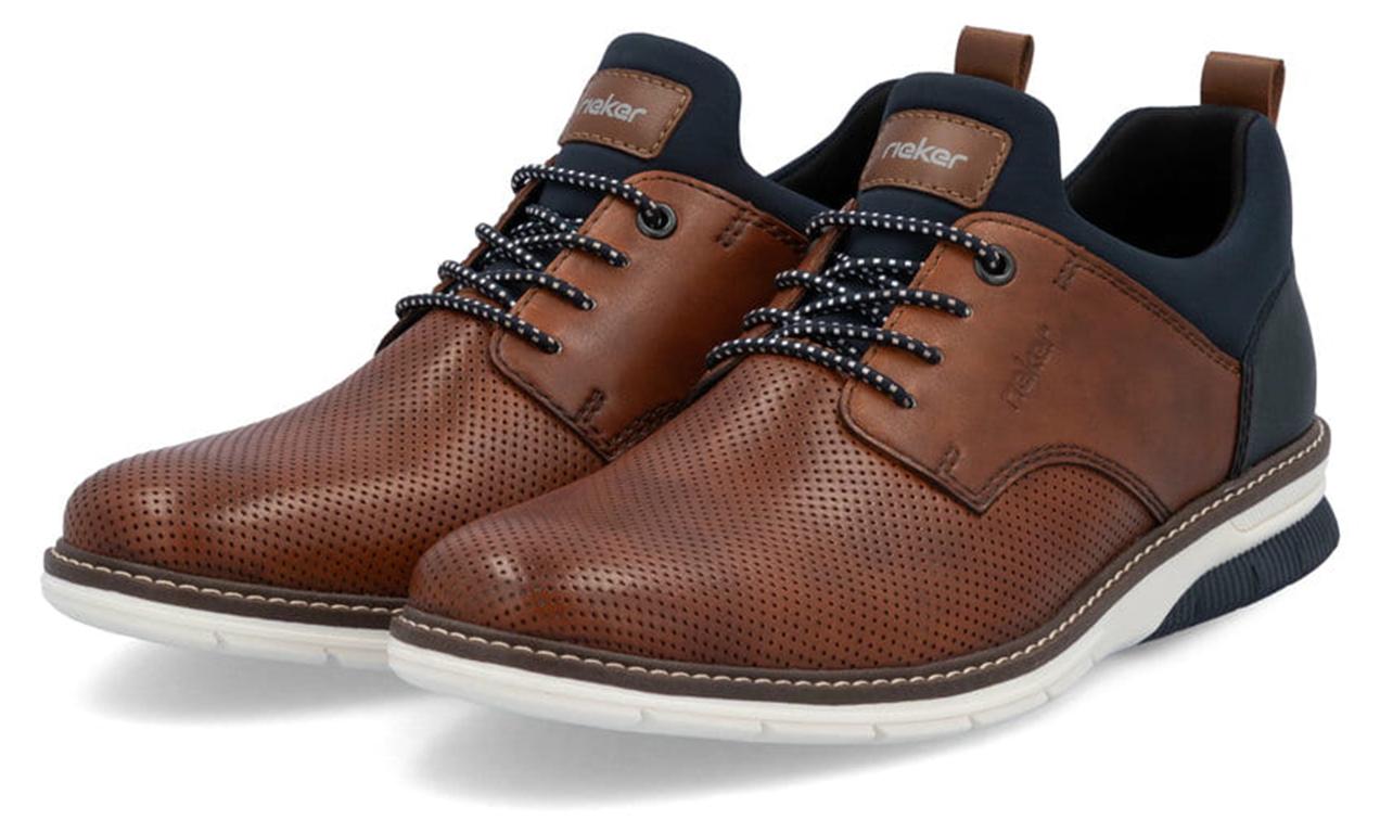 Rieker Slip-On Sneaker Business Schuh, Slipper, Festtagsschuh mit elastischen Schnürsenkeln (blau/braun)
