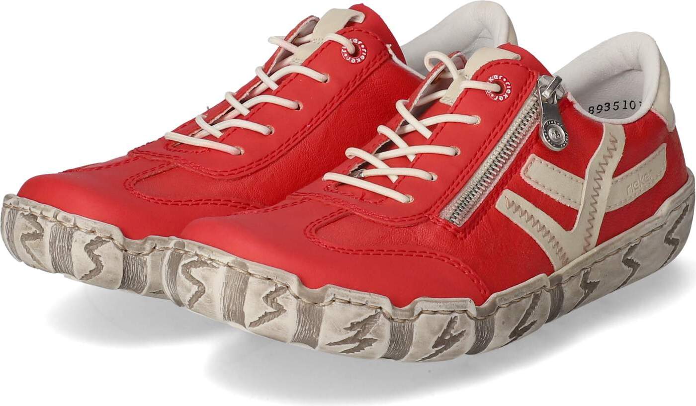 Rieker Slip-On Sneaker, Halbschuh, Schlupfschuh, Freizeitschuh mit weicher Innensohle (beige/rot)