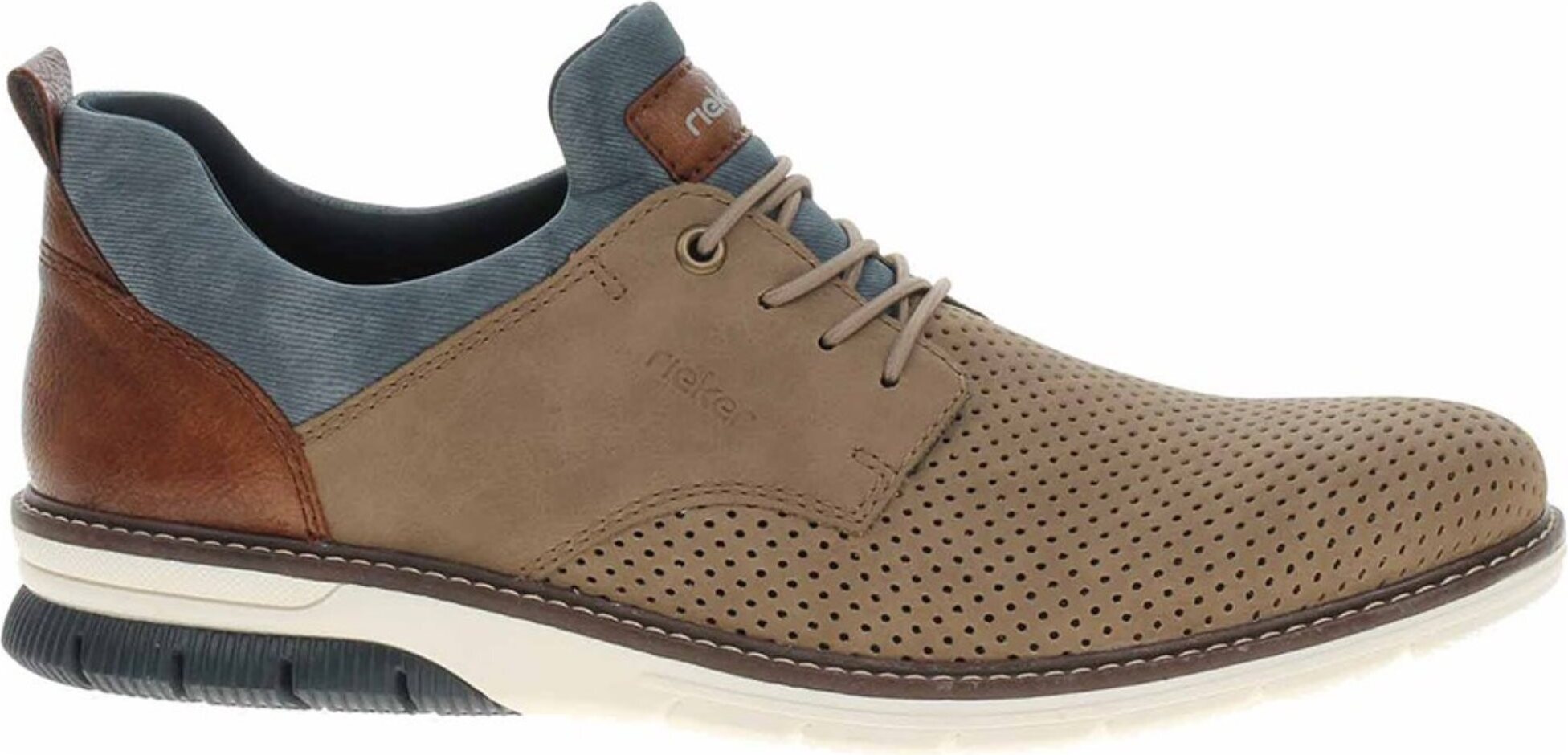 Rieker Slip-On Sneaker Schlupfschuh, Halbschuh, Freizeitschuh mit Prägung (beige/braun/blau)