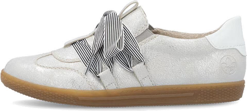 Rieker Slip-On Sneaker, Slipper, Halbschuh, Freizeitsneaker mit modischem Schnürelement (grau/silber)