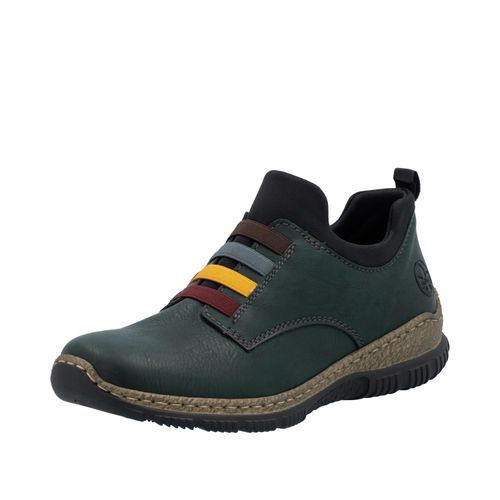 Rieker Slip-On Sneaker Slipper, Schlupfschuh, Freizeitschuh, Halbschuh mit Anziehlasche (grün/schwarz)
