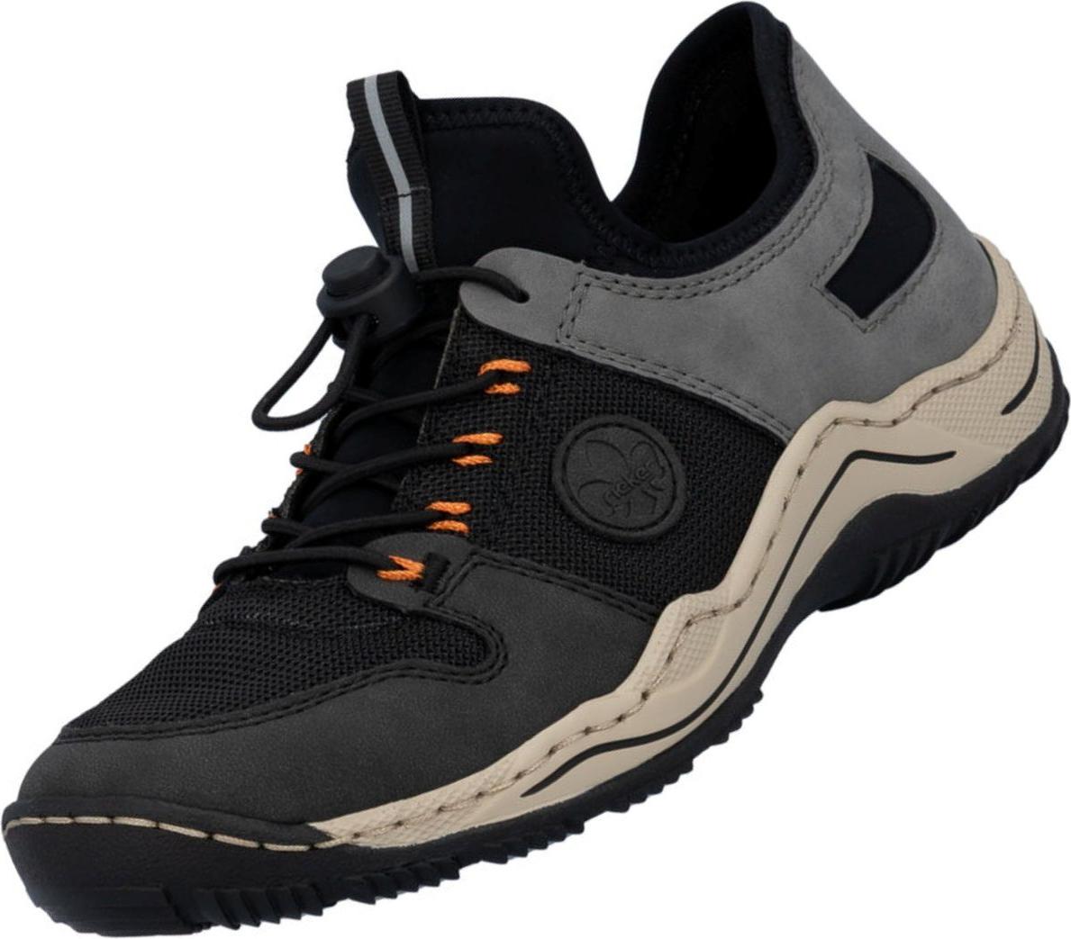 Rieker Slip-On Sneaker Slipper, Schlupfschuh, Freizeitsneaker mit Schnellverschluss (grau/schwarz)