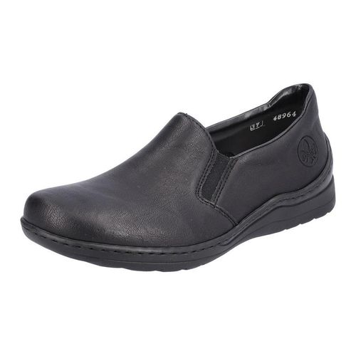 Rieker Slipper Alltagsschuh, Schlupfschuh, Freizeitschuh mit beidseitigem Stretch (schwarz)