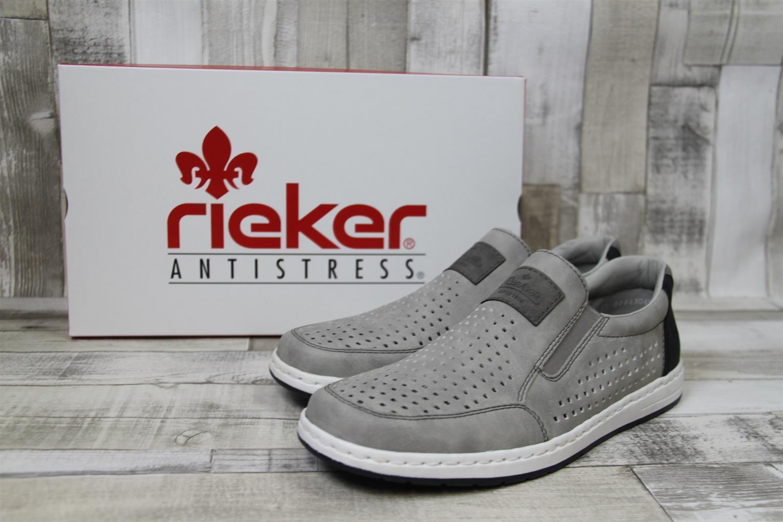 Dieser sportlich legere Herren Slipper von Rieker ist ein Musthave für die neue Saison.Gefertigt aus pflegeleichtem Kunstleder in Grau ist er mit Farbaktzenten in Schwarz an der Ferse versehen. +