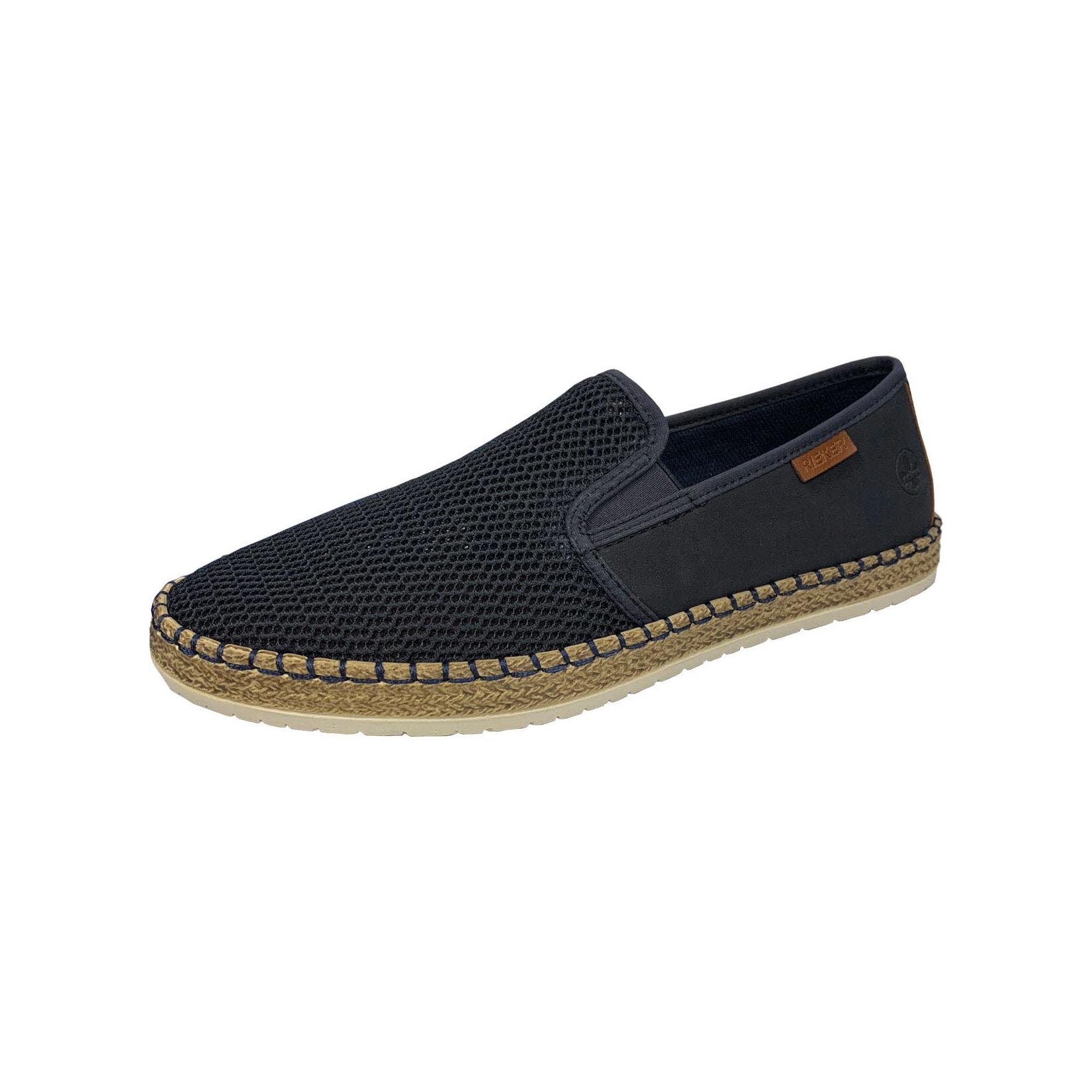 Rieker Slipper mit modischer Laufsohle in Bast-Optik (blau/braun)