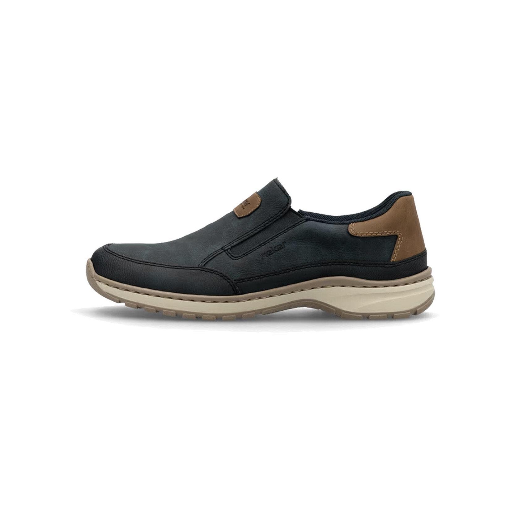 Rieker Slipper Slip-on-Sneaker, Freizeitschuh, Halbschuh mit Gummizug (blau/braun)
