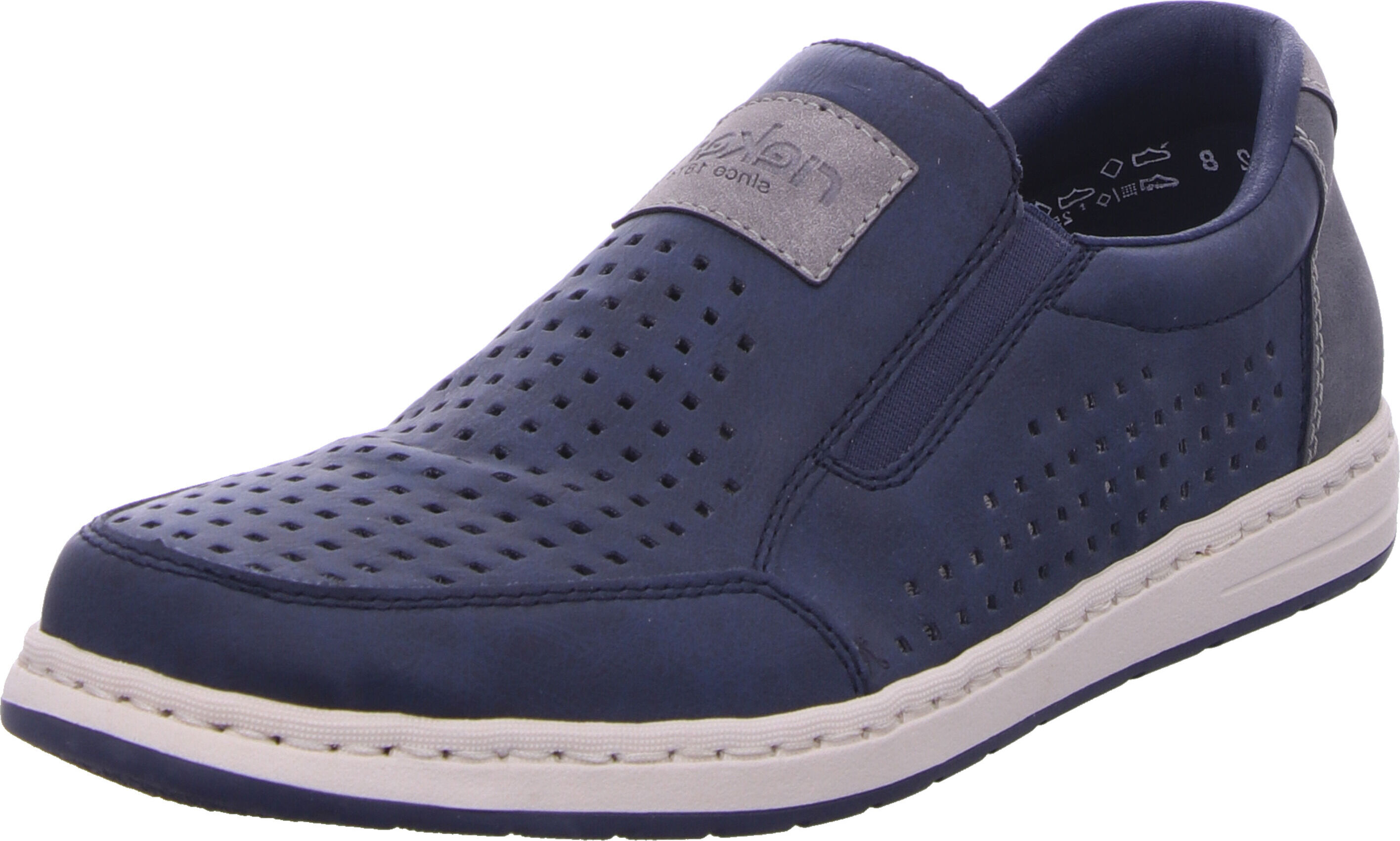 Rieker Slipper, Slip-on Sneaker, Loafer, Komfortschuh mit Gummizug für guten Sitz (blau/grau)