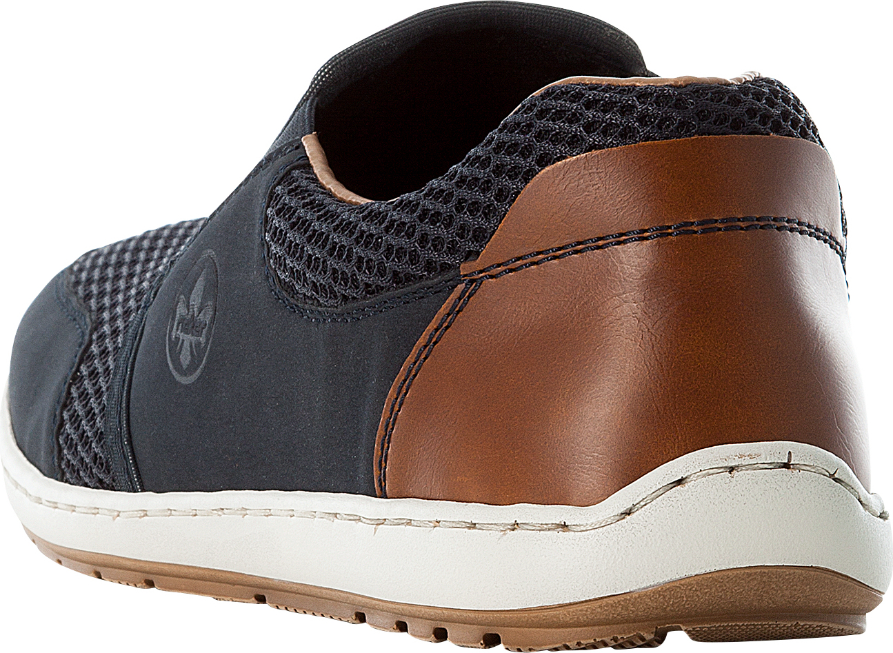 Rieker Slipper Sommerschuh, Schlupfschuh, Freizeitschuh mit kontrastfarbenen Besätzen (blau/braun)