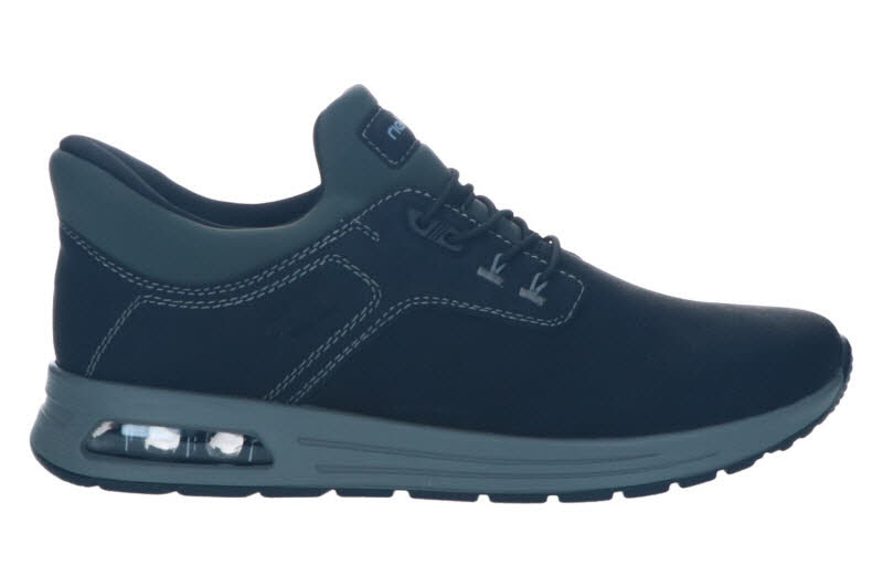 Dank der Gummischnürung lässt sich der Schuh schnell und unkompliziert anziehen, ganz ohne Verschluss. Das ovale Rieker Air Fenster im hinteren Bereich der Sohle verleiht dem Schuh eine sportliche Note.