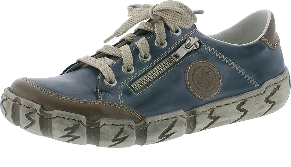 Rieker Sneaker mit Zierreißverschluss, Freizeitschuh, Halbschuh, Schnürschuh (blau/beige)