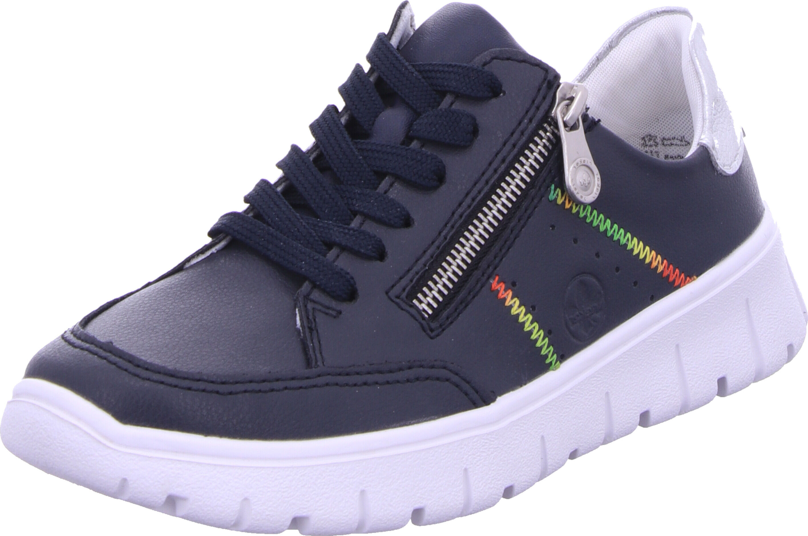 Entdecken Sie Ihre neuen Lieblingsbegleiter mit den Rieker Sneakern in elegantem Nachtblau und edlen silberfarbenen Akzenten! Diese außergewöhnlichen Halbschuhe kombinieren zeitloses Design mit modernem Komfort und sind die perfekte Wahl für jeden Alltag. +