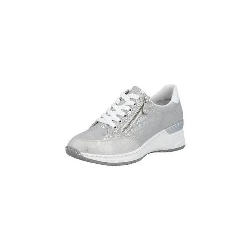 Sneaker RIEKER, Damen, Gr. 38, silber (silberfarben, metallic), Lederimitat, metallic, Schuhe Sneaker, mit Lettern bedruckt, Freizeitschuh, Halbschuh, Schnürschuh, Topseller