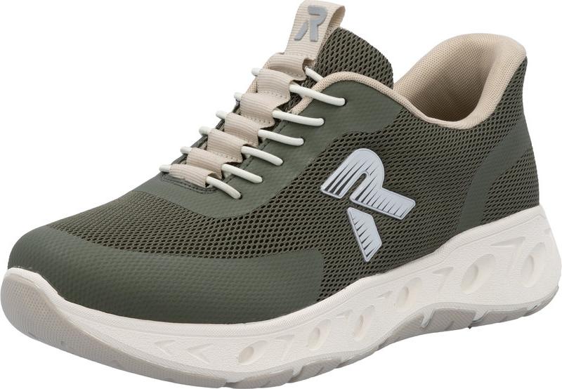 Alleskönner! Dieser grüne Rieker Sneaker Low für Damen ist nicht einfach irgendein Slipper...! Der Gummizug erleichtert das An- und Ausziehen besonders. +