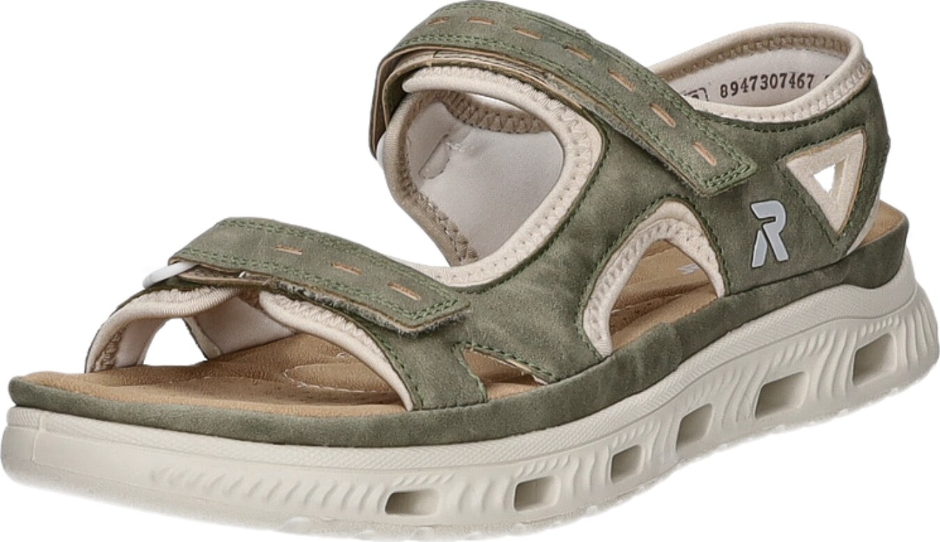 Die Rieker Damen Trekking Sandalen 64066 in Grün Kombi (52) sind die perfekte Wahl für modebewusste Frauen, die auf der Suche nach Komfort und Funktionalität sind.