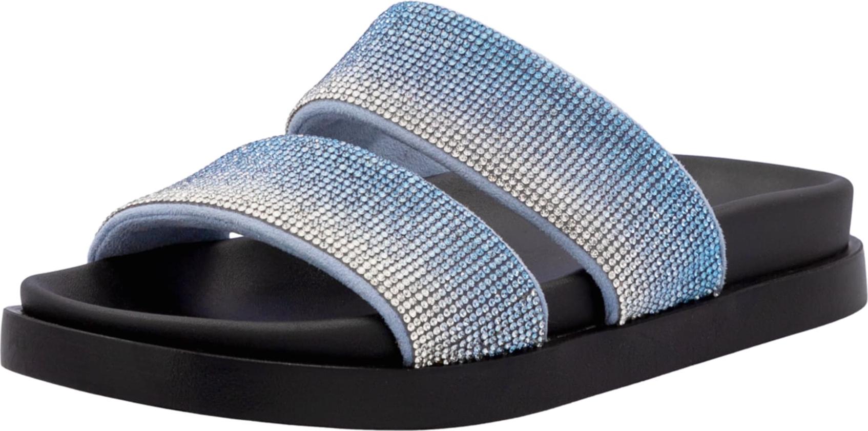 RIEKER Sport Pantolette, Sommerschuh, Strandschuh, Schlappen, Poolslides im Glitzer-Look (blau)