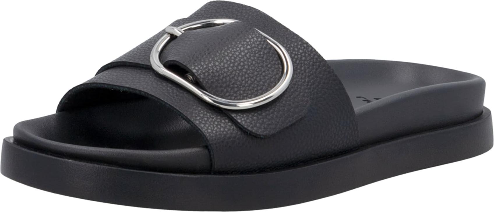 Schwarze Rieker Pantoletten aus hochwertigem Glattleder. +