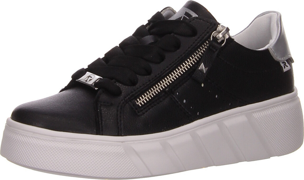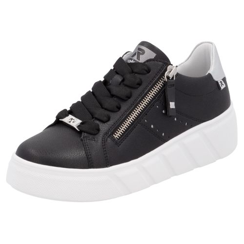 RIEKER Sport Plateausneaker, Freizeitschuh, Halbschuh, Schnürschuh mit seitlicher Perforation (schwarz/weiß)