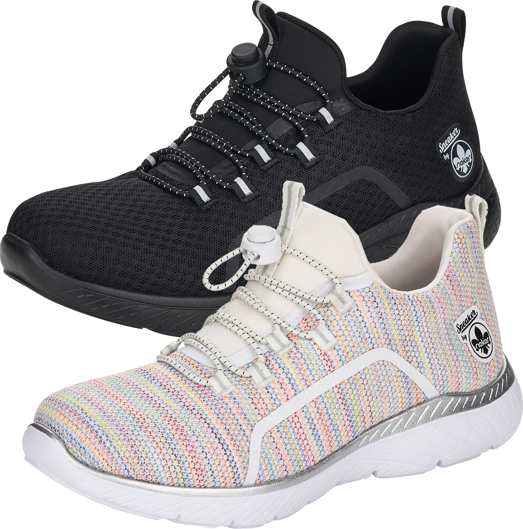 Schuhe aus pflegeleichtem Textil Mit den Slip-On Sneakern der Marke RIEKER Sport zeigst du deine Vorliebe für den entspannten Freizeit-Look. +