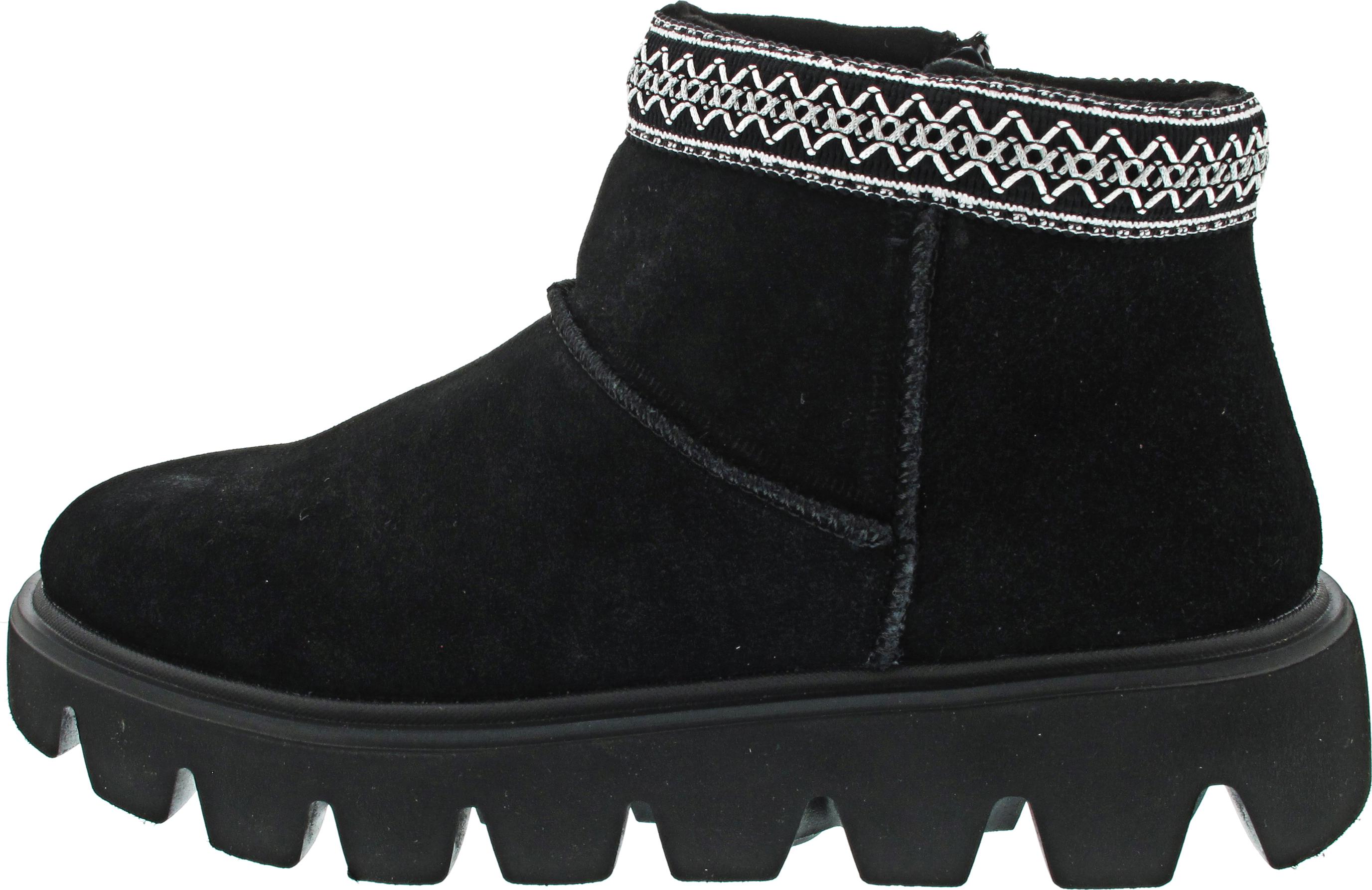 Schuhe aus weichem Veloursleder Das Obermaterial aus Veloursleder ist weich und langlebig. Die EVA-Sohle der Winterboots ist stark profiliert und sorgt für mehr Rutschfestigkeit auf unebenem Untergrund.