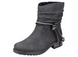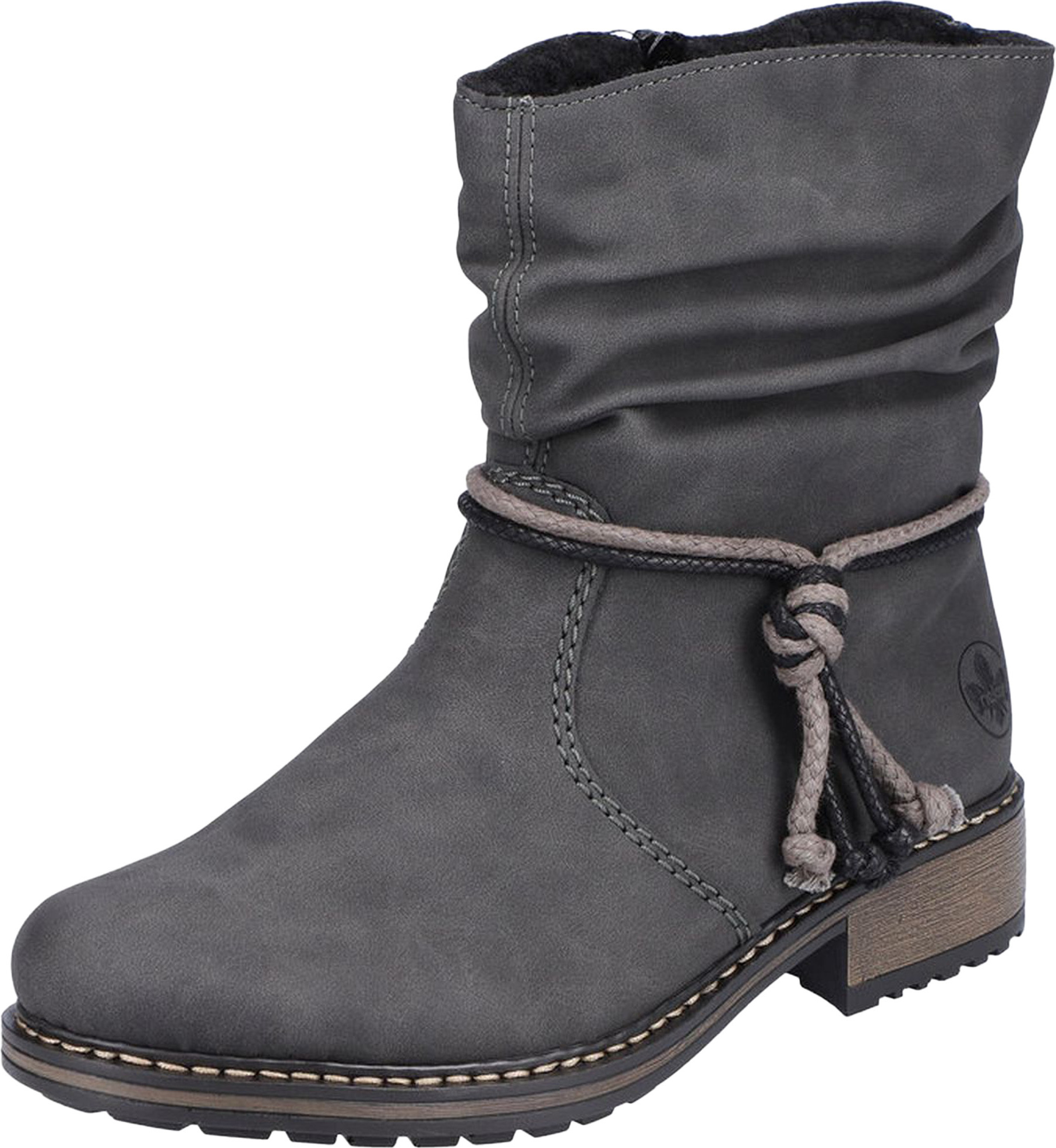 Sportlich chic ist diese Damen Stiefelette aus dem Hause Rieker.Gefertigt aus hochwertigem, weichem Kunstleder in Grau ist der Schaft mit einer besonderen Faltenlegung und einer schönen Zierschnürung versehen, die sofort ins Auge fällt. +