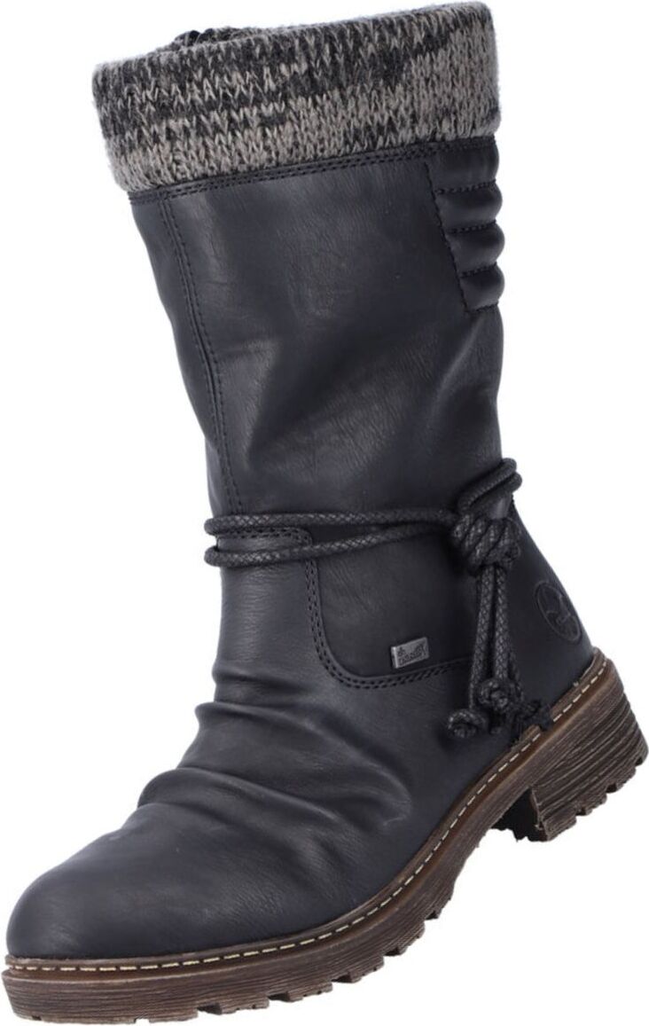 Rieker Winterstiefel, Winterboots, Blockabsatz, TEX-Membran, mit gestricktem Schaftrand (schwarz)