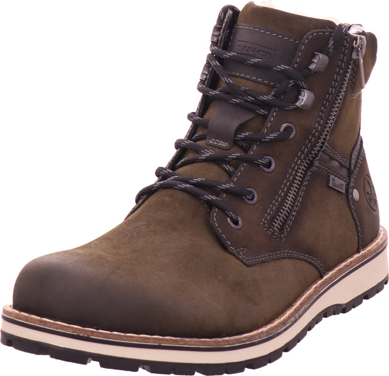 Mit den Rieker Winterboots in khaki-schwarz bist du bestens für die kalte Jahreszeit gerüstet. Dank der komfortablen Rieker TEX-Ausstattung bist du vor Wind und Nässe geschützt, während das atmungsaktive Obermaterial aus Nubuklederimitat für angenehmen Tragekomfort sorgt. Das Innenmaterial aus Schurwolle hält deine Füße schön warm, während die gepolsterte Textilinnensohle für zusätzliche Bequemlichkeit beim Gehen sorgt. +