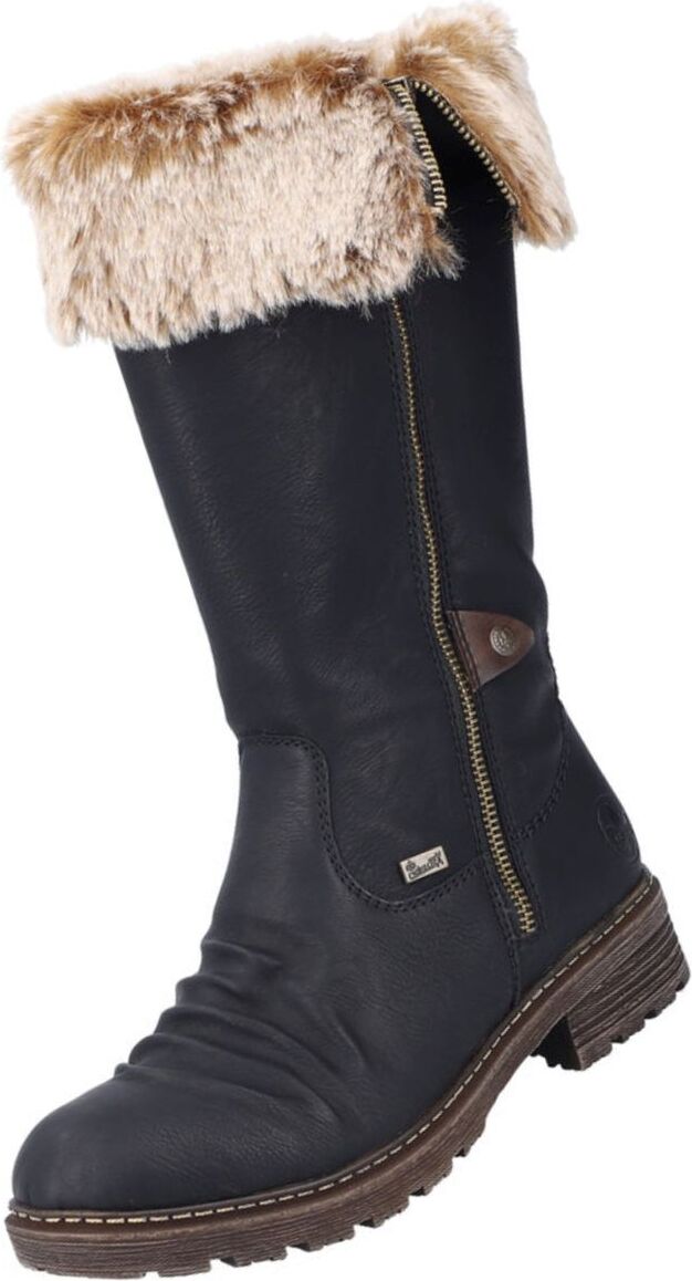 Die Rieker Winterstiefel sind klassisch geschnitten und bestechen durch ihre schlichte Eleganz. Der Blockabsatz bietet nicht nur eine komfortable Höhe, sondern garantiert auch sicheren Halt auf rutschigen Untergründen. Die runde Schuhspitze verleiht den Stiefeln eine feminine Note, während das modische Fellimitat an der Schaftkante einen Hauch von Luxus und Gemütlichkeit hinzufügt.
